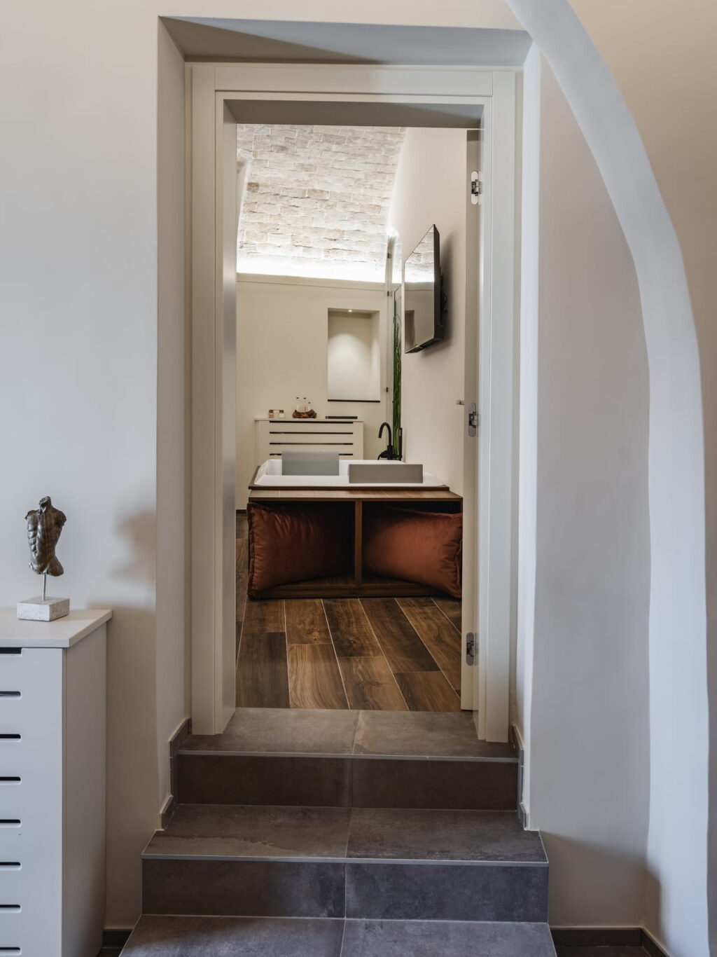 La camera è dotata di materassi MELISSA MED con sistema a molle indipendenti combinato con un Memory Foam antidecubito/ergonomico che si adatta al corpo e ai movimenti. I materassi vengono muniti di topper, alleati perfetti per intensificare la comodità del letto.