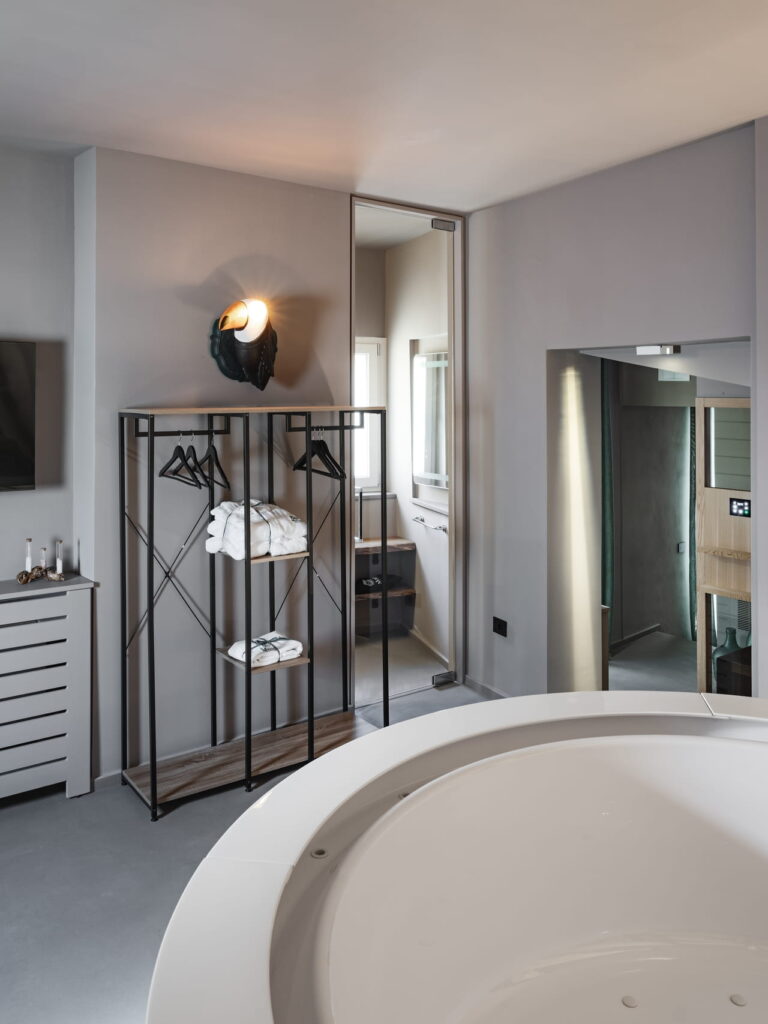 All’interno della Spa privata, avrai a tua disposizione un’ esclusiva vasca idromassaggio a sfioro 190×190, sauna, doccia emozionale e saletta tisaneria.